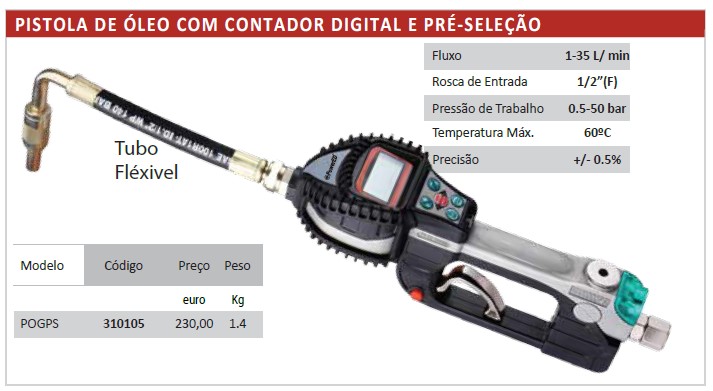 PISTOLA DE ÓLEO COM CONTADOR DIGITAL E PRÉ-SELEÇÃO
